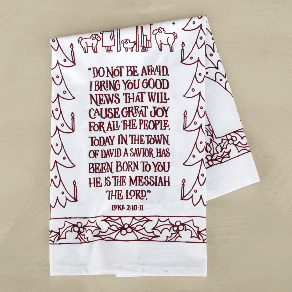 Bring Christmas joy into your home’s heart. Little Things Studio’s Great Joy for All the People tea towel offers daily hope and brings coziness, cheer, and meaning. Even simple kitchen moments become festive; this tea towel adds beauty and truth to your holiday rhythm.