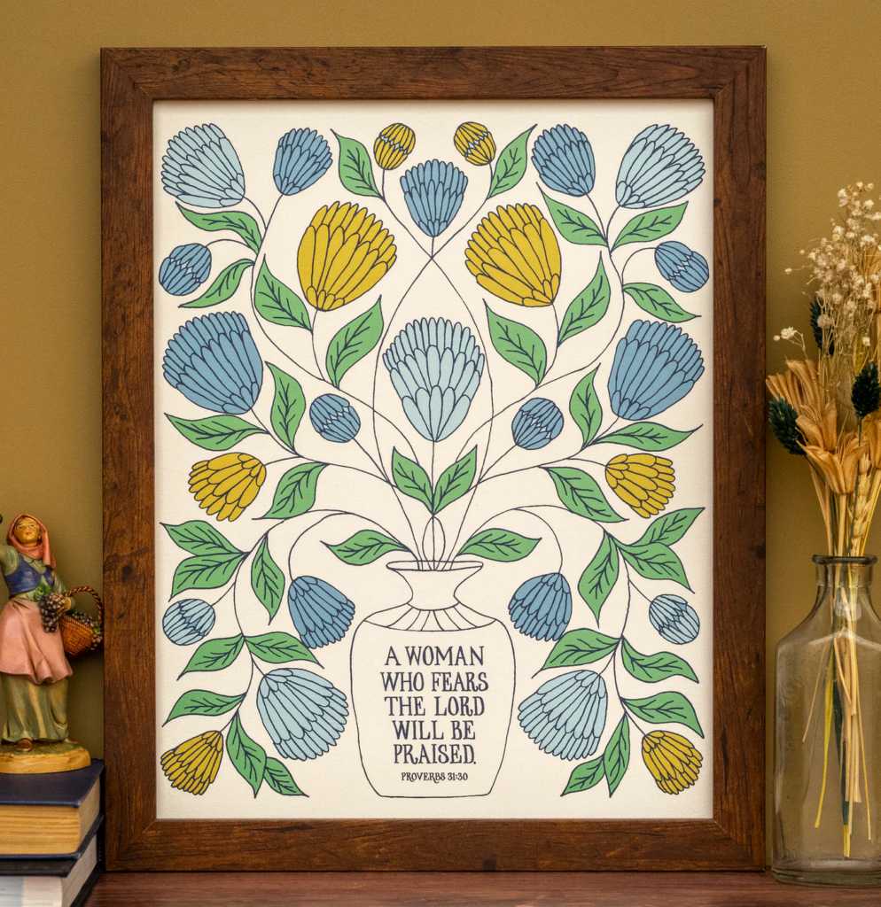 The A Woman Who Fears Scripture art print by Little Things Studio keeps wisdom right in front of your eyes—steadying, grounding, and reminding you who you are and whose you are every time you pass by. It’s beauty with purpose, truth you can hang on the wall, and a daily invitation to live from a place of quiet strength.